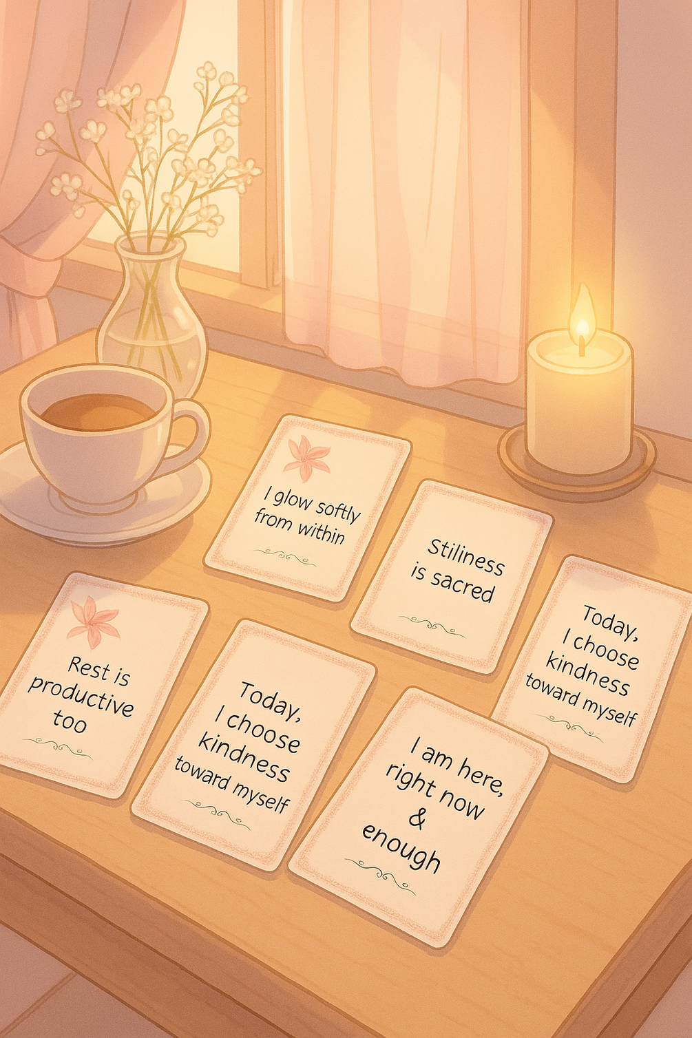 A soft, calming printable deck for gentle mornings & mindful self-love.