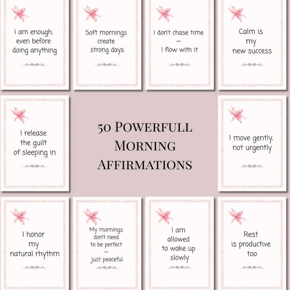Designed especially for women and mothers who long for calmer beginnings, these 50 affirmation cards help you reconnect with yourself before the day starts asking for your attention.